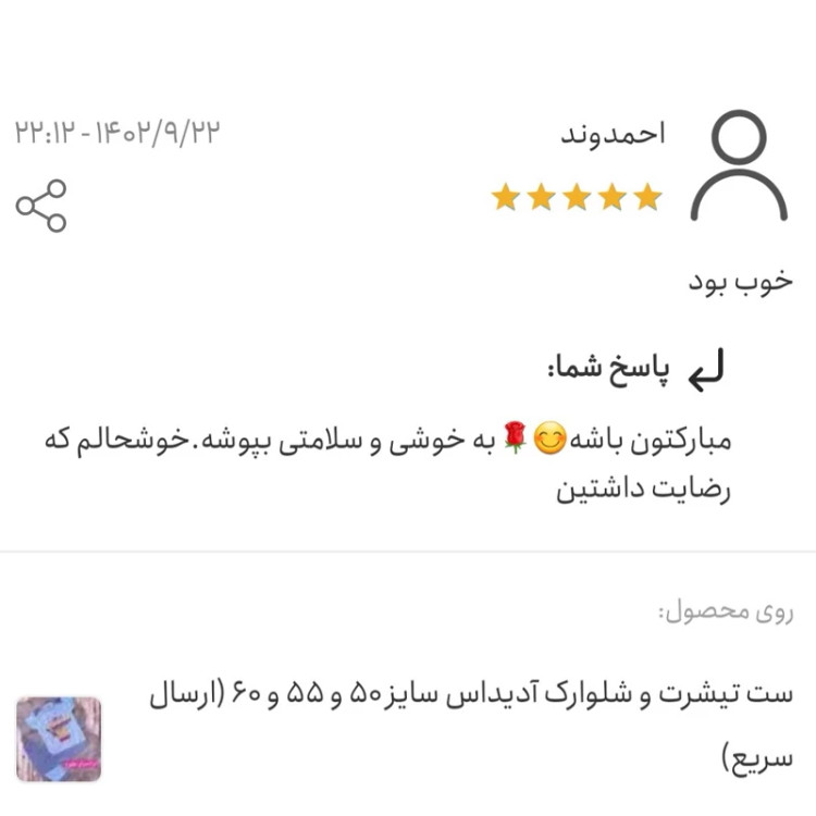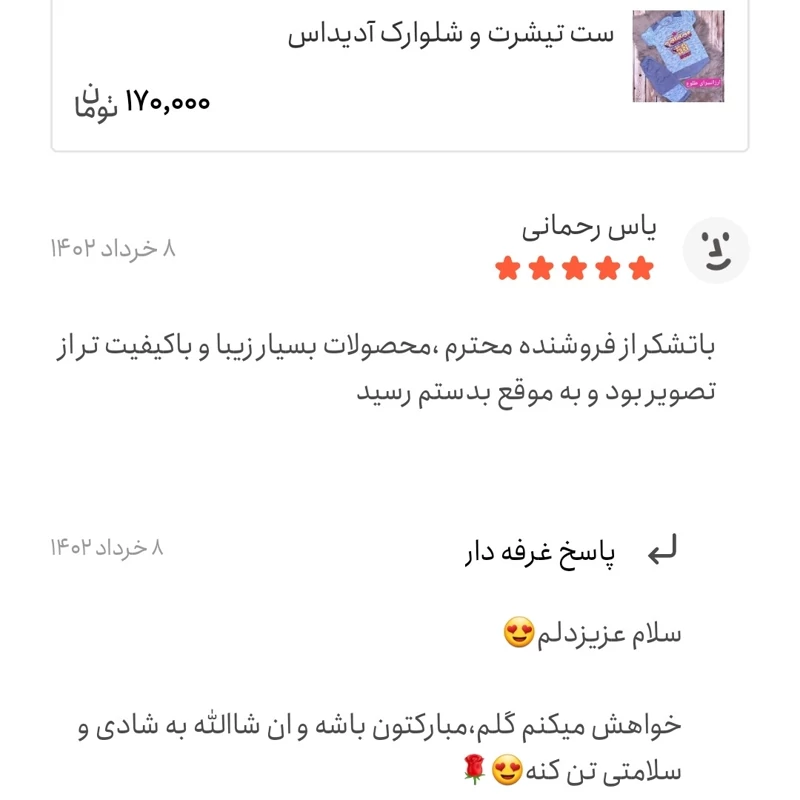 🌸🌸🌸کالکشن🌸🌸🌸 ست جذاب از بهترین فروشگاه براتون آوردم😍 🧒ست تیشرت و شلوارک اسپرت پسرانه آدیداس😍 🧒سایز:60و55و50در 2 رنگ شیک و جذاب 🧒پارچه افکدار نخی.مدل پرطرفدار تهرونیا جنس خنک و مناسب فصل که بچه عرق سوز نشه اندازه های سایز 55 رنگ کرمی: قد تیشرت حدود 55 سانت/عرض تیشرت،پهنا از زیربغل: 37 سانت قد شلوارک: 50 سانت اندازه سایز 50 رنگ کرمی: قد تیشرت: 50 سانت عرض تیشرت،پهنا از زیر بغل:حدود 33 سانت قد شلوارک:47 سانت اندازه سایز 50 رنگ طوسی:قد تیشرت:50 سانت عرض تیشرت،پهنا از زیر بغل:32 سانت قد شلوارک 50 سانت 🧒تن خورش خیلی قشنگه.کیفیت عالی پول پارچه و دوختشم نیست ارسال سریع