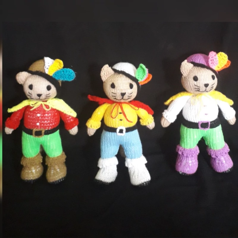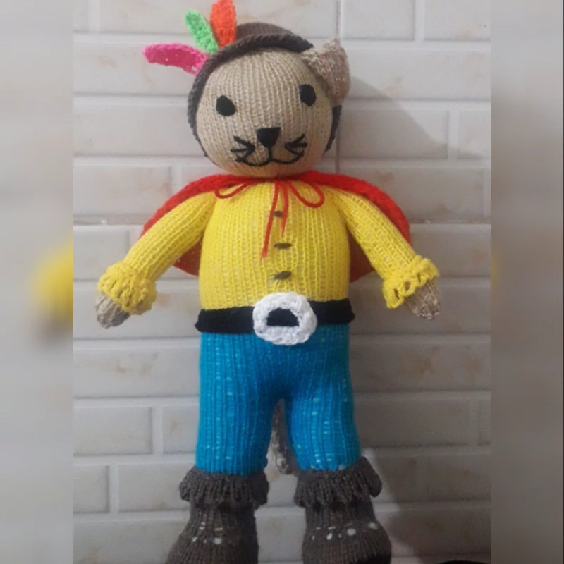 عروسک گربه چکمه پوش شوالیه دستبافت بافتنی