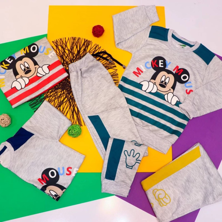 بلوز شلوار پنبه ملانژپسرانه میکی موس سایز55.کیفیت عالی