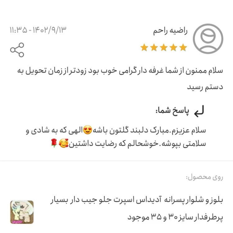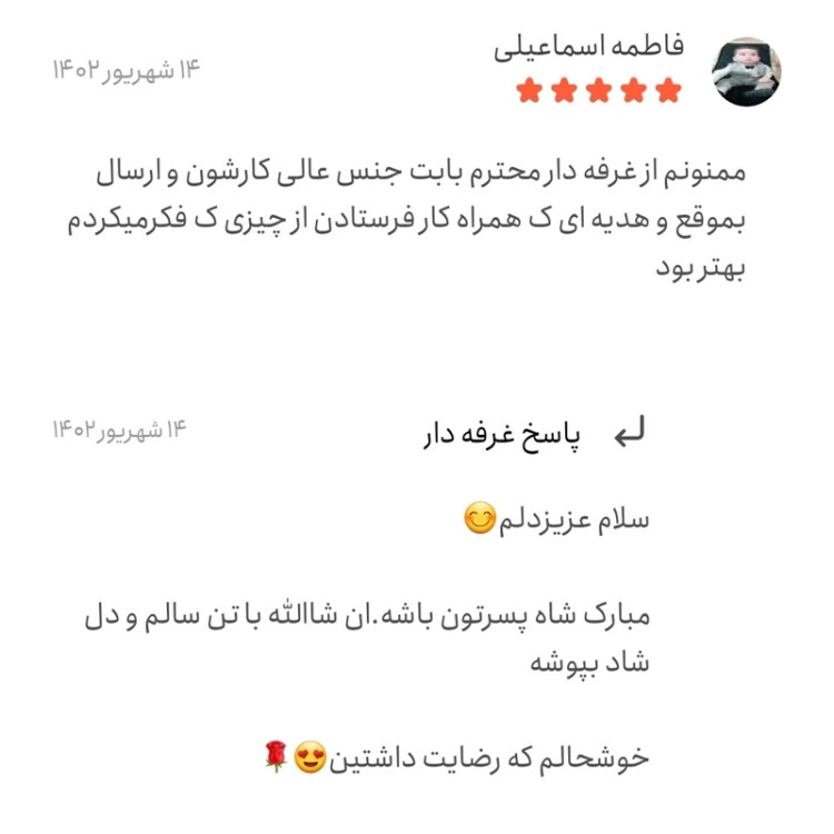 ست دخترونه و ست پسرونه جذاب براتون آوردم 🦋ست بیلر لی(سرهمی) و بلوز پنبه خارجی 😍😍 🦋جنس بلوز نخ پنبه دو رو اعلا💯 🦋سایزبندی: 30،35،40 مطابق عکس.تن خورش خیلی قشنگه😍 قیمتشم که عالیه 🌺مدلی شیک واسه گل پسراتون و گل دختراتون🌺 تازه از زیر دوخت دراومده تا تموم نشده مال خودت کن همینو بازار زیر 800 تومن نمیده.شما مستقیم از تولیدی دارین میخرین که انقد قیمت پایین زدیم با حذف واسطه ها نظرات مشتریان عزیزمون رو بخون هرکی خریده راضیه. ارسال سریع به تمام نقاط ایران داریم