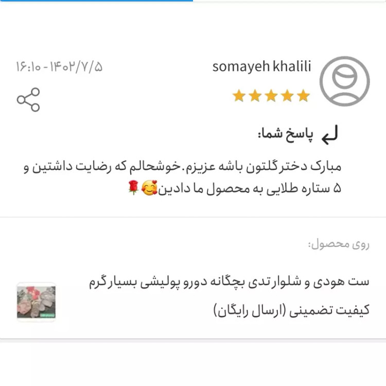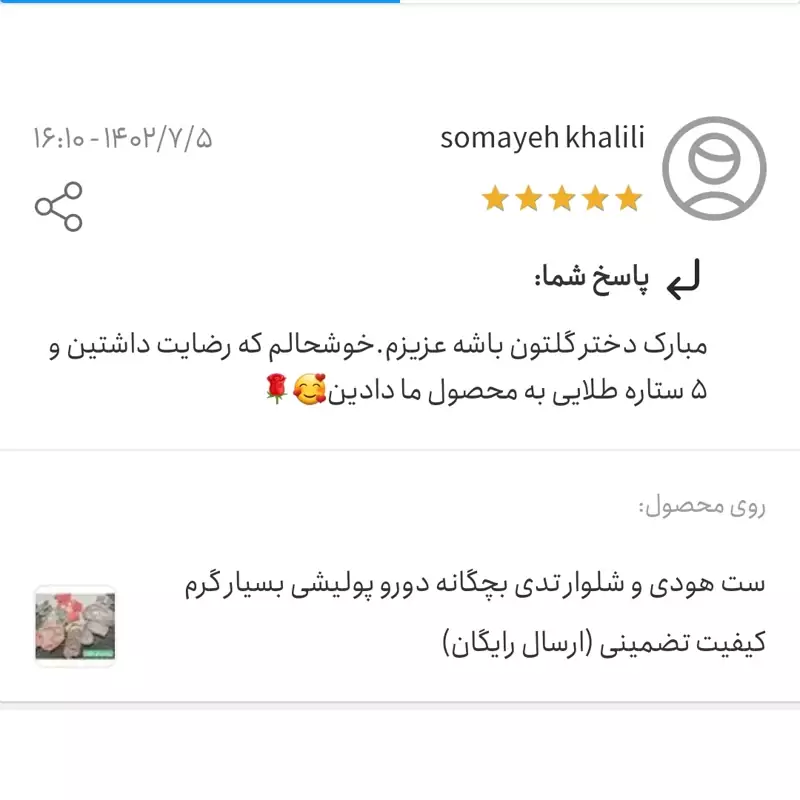 ببینید سِت خوشگلی براتون آوردم😍 💜ست هودی و شلوار داخل کُرکی گرم وارداتی 💜جنس گرم و درجه یک.پرطرفدارترین مدل 💜 خرگوشی خوشگل😍😍 💜جیب دار و کلاهدار،جنس خیلی گرم باکیفیت 💜سایزبندی: 35و40و45و50 💜رنگ طوسی و زرشکی شیک و مجلسی مطابق عکس اندازه های سایز 35 رنگ زرشکی:قد هودی از سرشانه به پایین 33 سانت/عرض هودی،پهنا از زیر بغل 28 سانت/قد شلوارحدود 46 سانت اندازه های سایز 40 رنگ زرشکی و طوسی دودی:قد هودی از سرشانه به پایین 38 سانت/عرض هودی،پهنا از زیر بغل حدود 31 سانت/قد شلوار حدود 51 سانت اندازه های سایز 45 رنگ زرشکی و طوسی دودی:قد هودی از سرشانه به پایین 42سانت/عرض هودی،پهنا از زیر بغل 32 سانت/قد شلوارحدود 60 سانت اندازه های سایز 50 رنگ زرشکی و طوسی دودی:قد هودی از سرشانه به پایین 47 سانت/عرض هودی،پهنا از زیر بغل 36 سانت/قد شلوارحدود 66 سانت بهترین پوشاگ گرم 🌺یه تیپ خارجی خوشگل واسه دلبندتون🌺 زیر قیمت بازار همین جنس و کیفیت رو 900 تومن میفروشن ولی از ما بدون واسطه و به قیمت تولیدی خرید میکنید😍 🌺🌺🌺🌺🌺 زیرقیمت بازار جنس گرم 😍 تا تموم نشده مال خودت کن ارسال سریع